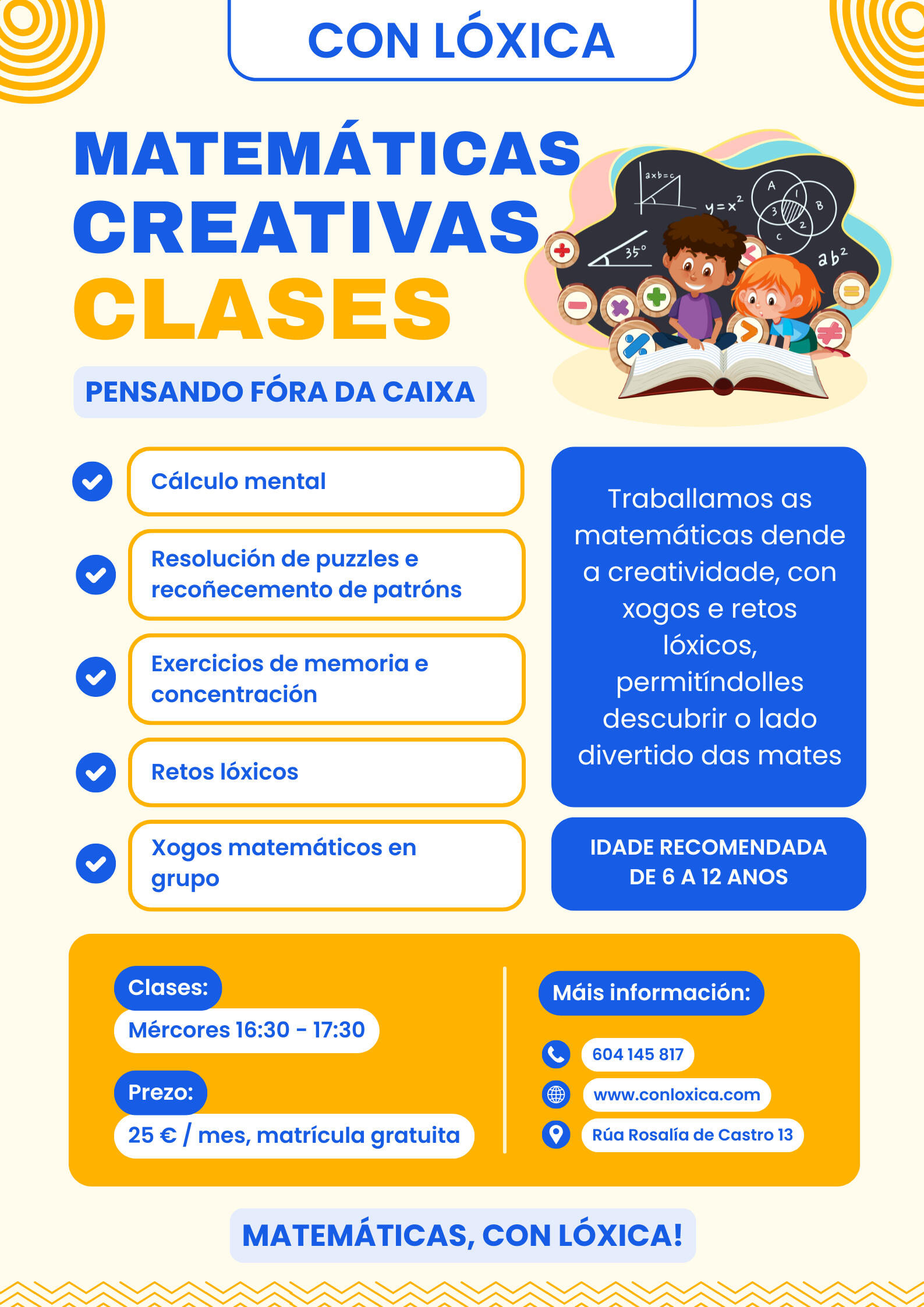 | Matemáticas creativas | Mércores de 16:30 a 17:30 | 25 € /mes |